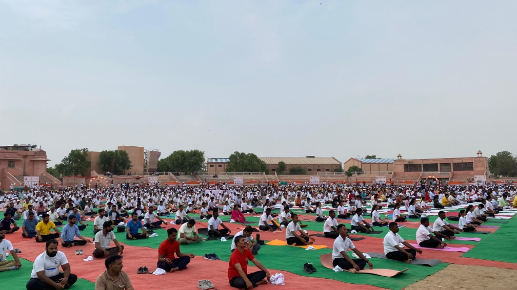 बीकानेर, 21 जून। ग्यारहवें अंतराष्ट्रीय योग दिवस के अवसर पर शनिवार को जिला मुख्यालय से लेकर गांव-गांव तक हजारों लोगों ने सामूहिक योगाभ्यास किया और ‘आरोग्यता’ एवं ‘वसुधैव कुटुंबकम’ का संदेश दिया। एक पृथ्वी और स्वास्थ्य के लिए योग’ थीम के साथ योग दिवस का जिला स्तरीय समारोह डॉ. करणी सिंह स्टेडियम में आयोजित हुआ। जिला प्रशासन और आयुर्वेद विभाग के संयुक्त तत्वावधान में आयोजित कार्यक्रम में श्री यादें माटी कला बोर्ड के अध्यक्ष श्री प्रहलाद राय टाक ने प्रातः 6.15 बजे दीप प्रज्वलन कर कार्यक्रम की शुरुआत की। इसके पश्चात प्रधानमंत्री श्री नरेंद्र मोदी ने योग से जुड़ा संदेश दिया। अतिरिक्त कलेक्टर प्रशासन रामावतार कुमावत ने योग संदेश और योग की जानकारी दी। इसके बाद निर्धारित प्रोटोकॉल के अनुसार सामूहिक योगाभ्यास शुरू हुआ।