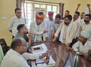 नापासर न्यूज। क्षेत्र के किसानो ने शुक्रवार को सहायक अभियंता कार्यालय में सहायक अभियंता व कनिष्ठ अभियंता के समक्ष बिजली आपूर्ति बदहाल होने व फसलें जलने को लेकर आक्रोश जताया,विरोध प्रदर्शन किया,ऐ ईन कपिल देव गुप्ता को बिजली समस्याओं से अवगत करवाते हुए लिखित में ज्ञापन देकर जल्द निराकरण करने की मांग की,किसान नेता एडवोकेट भरत कस्वां ने तीन दिनों का समय दिया है अन्यथा आन्दोलन करने की चेतावनी दी है, ज्ञापन में बताया कि क्षेत्र में बिजली आपूर्ति पूरी तरह बदहाल है, फसलें जल रही है लगातार ट्रिपिंग से मोटरें जल रही है,अघोषित बिजली कटौती बंद करें,वोल्टेज पूरा देवे,नापासर -सेकंड जीएसएस में जोड़े गये 15 कुंए वापस नापासर-फर्स्ट में जोड़े, लाईनों की रिपेयरिंग व अंडरलाइन पोल लगाए,गाँवो में सप्लाई 24 घण्टे चालू रखें,इस दौरान किसान तोलाराम, ओमप्रकाश, रामेश्वर, सहीराम, शीशराम,सोहन नाथ, कन्हैयालाल, मनोज, भंवरलाल,हड़मान,नन्दराम,रूपाराम,लिछमणराम,जैसा राम सहित बड़ी संख्या में ग्रामीण उपस्थित थे।
