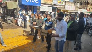 मंदिर प्रांगण से लेकर पूरे कस्बे तक भक्ति का अनुपम दृश्य देखने को मिला। हनुमान चालीसा के सामूहिक पाठ, भावविभोर कर देने वाली महाआरती और हरिनाम संकीर्तन ने श्रद्धालुओं को भाव-विभोर कर दिया। इसके पश्चात निकली भव्य शोभायात्रा में “हरे राम हरे रामा, राम राम हरे हरे, हरे कृष्णा हरे कृष्णा, कृष्णा कृष्णा हरे हरे” के मधुर कीर्तन से वातावरण गुंजायमान हो उठा।
